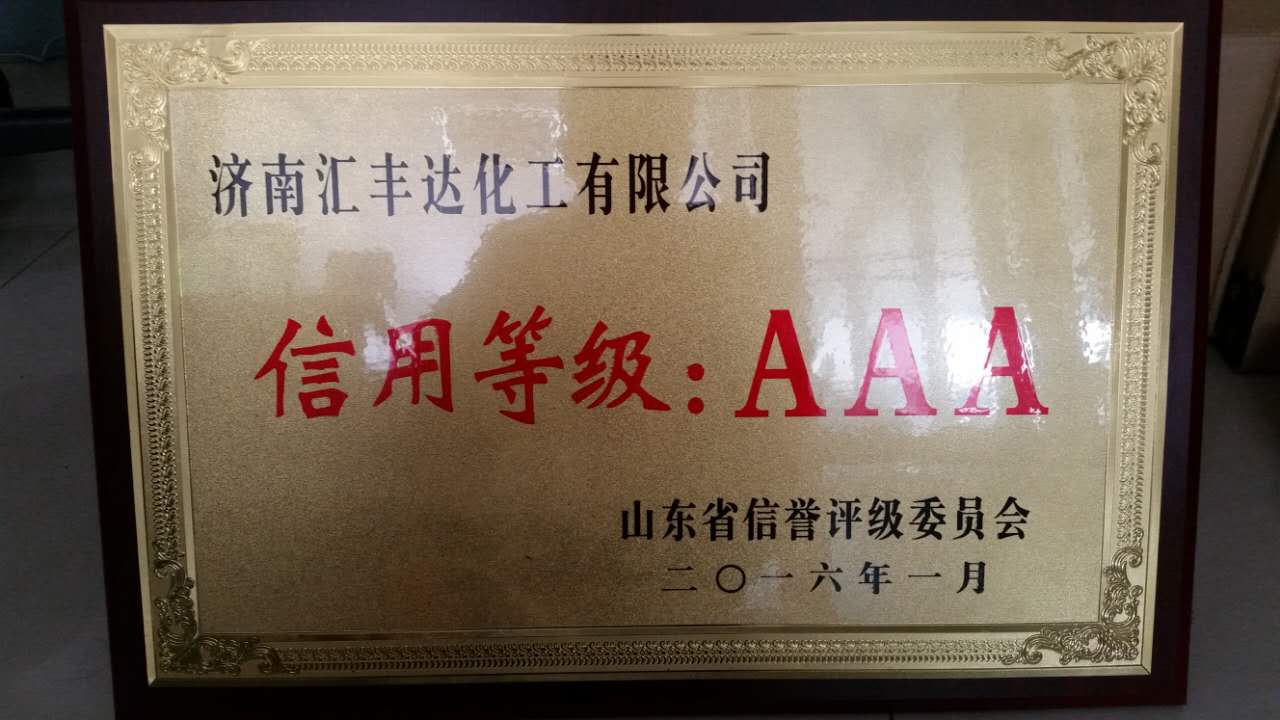 2016年1月7日,是公司成立10周年的喜慶日子。濟(jì)南匯豐達(dá)化工有限公司被山東省信譽(yù)評級委員會評為“信用等級AAA”企業(yè)。